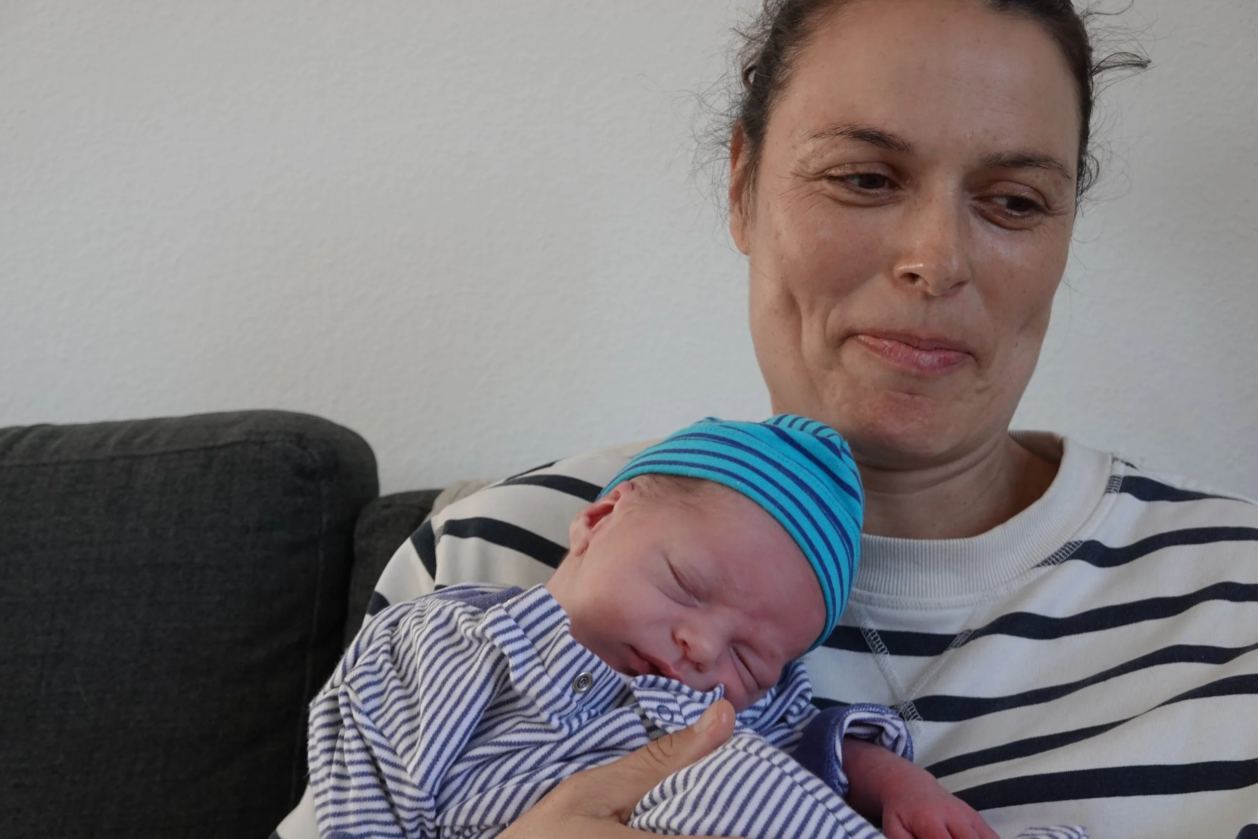 Meanwhile, Nicole was living an entirely different story. Her nights in the hospital were a blur of constant nurse visits and sheer exhaustion. Lou wouldn’t latch, instead, he demanded his colostrum served up like some adorable wiseass. One nurse would suggest a method, then her shift would end, and the next would suggest a slightly different method, or maybe the exact same one with a new twist, until Nicole had tried everything. And poor Nicole, tethered to an IV, could barely move, let alone manage a squirming newborn with one arm.